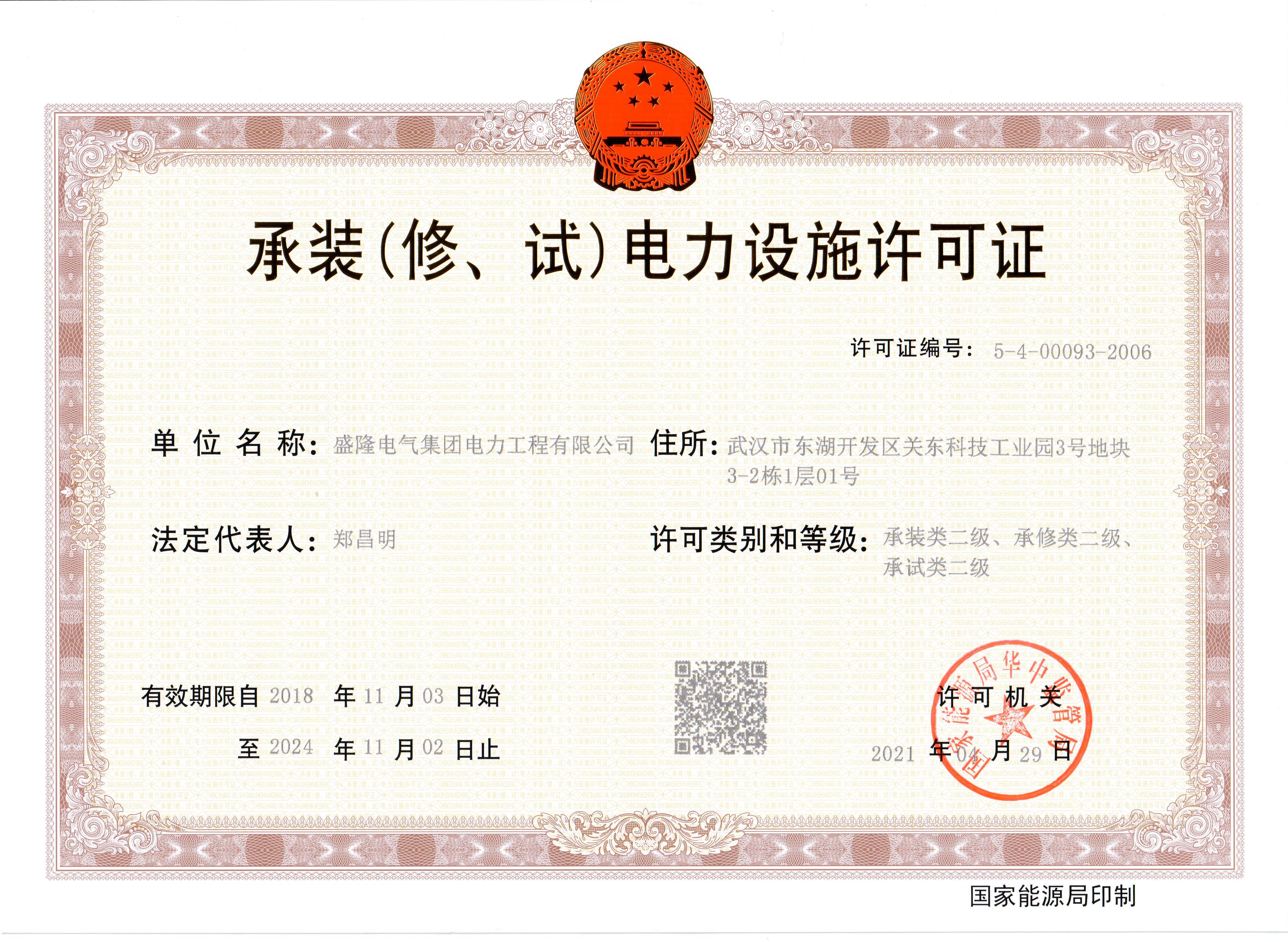 Our Power Engineering Company has the Grade II General Contracting for Electric Power Works Qualification, and can undertake the construction of power generation projects with a single capacity up to 200,000 kW, and up to 220kV class of transmission lines and sub-stations. We also have the Grade II Professional Contracting for Power Transmission and Transformation Works Qualification, and can undertake the construction of power transmission lines and sub-stations projects up to 220kV class. We have the Grade II Professional Contracting for Urban and Road Lighting Works Qualification, and can undertake the construction of urban and road lighting projects with a single contract up to 12 million yuan. The company also has the Grade II Professional Contracting for Building Mechanical and Electrical Installation Works Qualification, can undertake the installation of equipment, lines, pipelines, 10kV class of sub-stations works and non-standard steel structures in various type of building projects with a single contract up to 20 million yuan. We also have the Grade III License for Undertaking the Installation, Repair, and Test of Electric Power Facilities Qualification, can undertake the installation, repair, or test of electric power facilities up to 110kV class. Our Optics Valley Power Company has the Grade III Design for Power Transmission and Distribution Qualification, and can undertake the design of major and supporting works for small and medium construction projects.