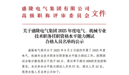 關于盛隆電氣集團2025年度電氣、機械專業技...